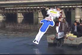 दिल्ली विधानसभा चुनाव में यमुना प्रदूषण का मुद्दा राजनीतिक चर्चा का केंद्र बना हुआ है। बीजेपी नेता प्रवेश वर्मा ने यमुना के बढ़ते प्रदूषण के विरोध में एक अनोखा प्रदर्शन किया। वर्मा ने दिल्ली के पूर्व मुख्यमंत्री अरविंद केजरीवाल का एक कटआउट यमुना नदी में डुबोते हुए ,अपनी नाराजगी व्यक्त की। उन्होंने कहा कि केजरीवाल ने वादा किया था कि ,2025 तक यमुना को पूरी तरह साफ कर देंगे, लेकिन वो इस वादे को पूरा करने में असफल रहे।