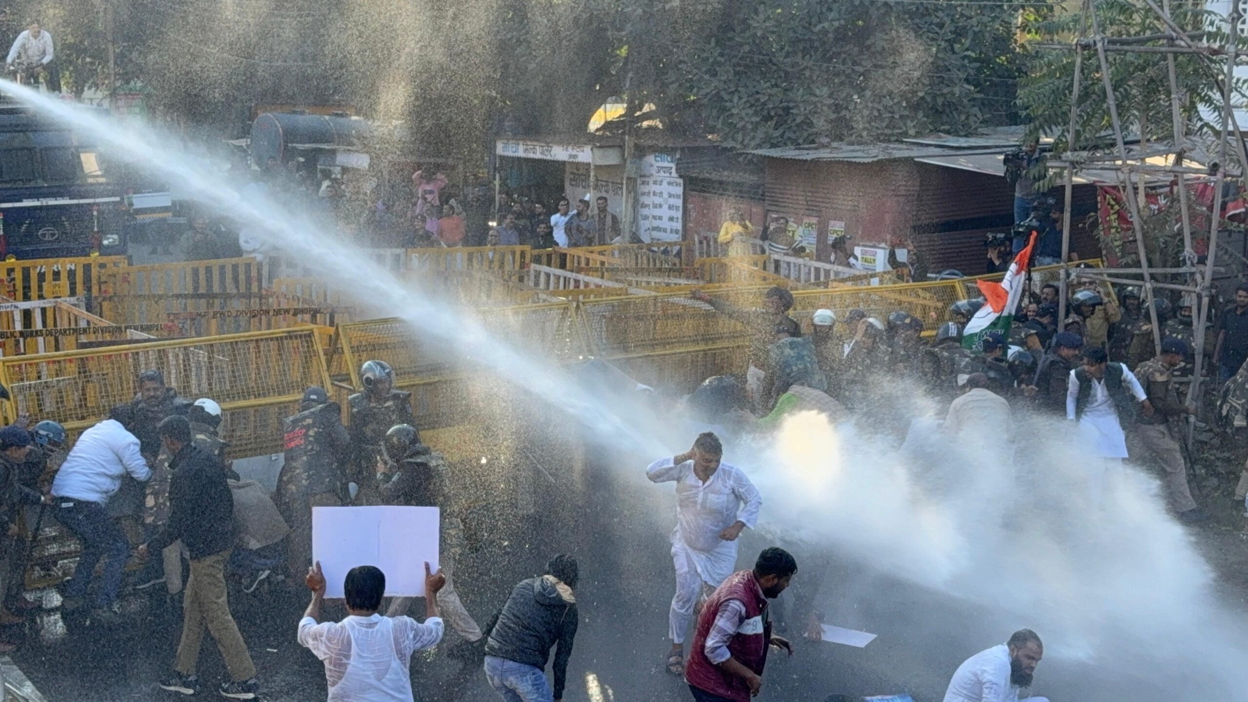 रिकेडिंग कर उन्हें रोक दिया और जलकैनन का इस्तेमाल किया। इसके बाद कई नेताओं और कार्यकर्ताओं को बसों में भरकर गिरफ्तार कर लिया गया।